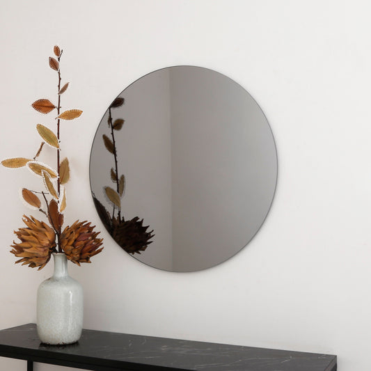 Black Tinted Contemporary Round Frameless Mirror, Minimalist Mirror