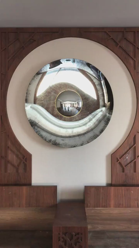 Contemporary Convex Mirror wih Concave Mirror, Inspired by Space Age decor, Gold Mirror, Hand crafted, Mirror Wall Decor, Curve Mirror