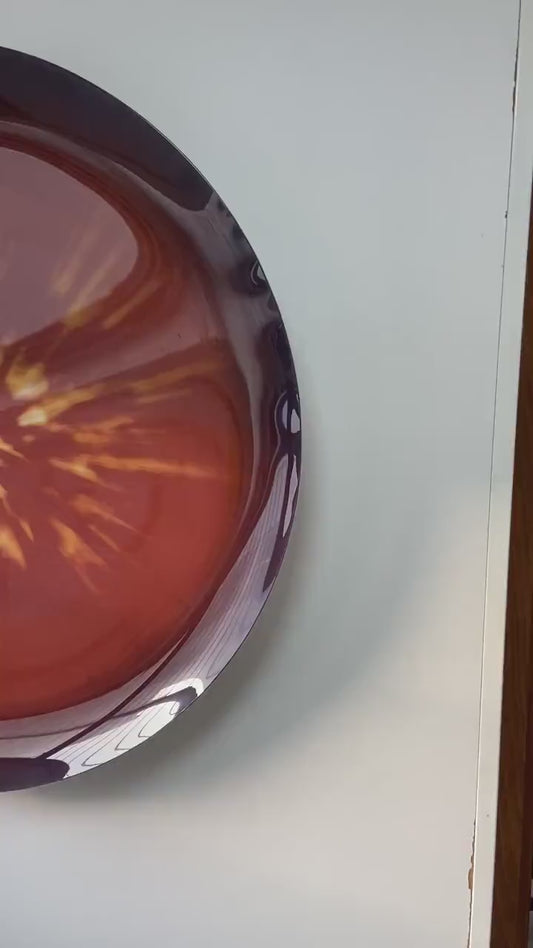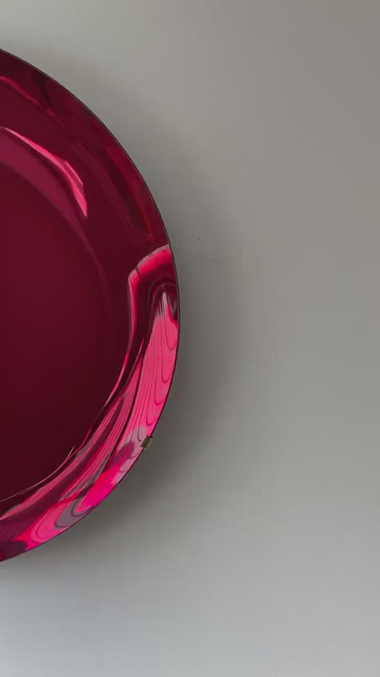 Modern Sculptural Red Glass, Inspired by Space Age decor, Contemporary Concave Mirror, Hand Crafted, Wall Decor