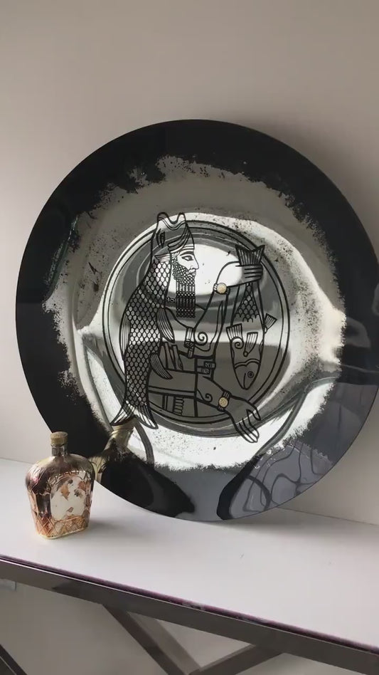 Concave Mirror with Mythological Illustration, Antique Mirror, Mirror Wall Decor, Black Mirror, Aristic Mirror, Mesopotamian Illustration,