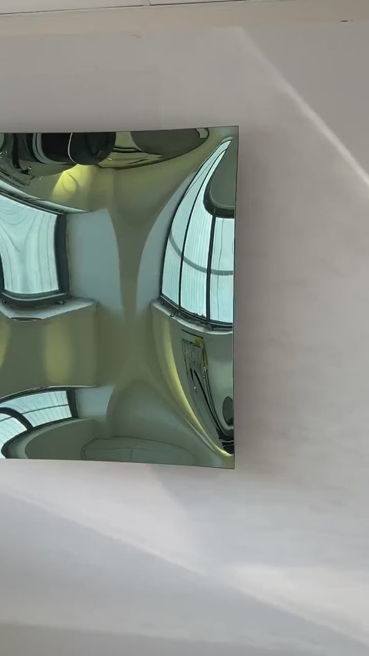 Contemporary Square Concave Mirror, Space Age decor, Green Mirror, Contemporary Mirror, Hand crafted, Mirror Wall Decor