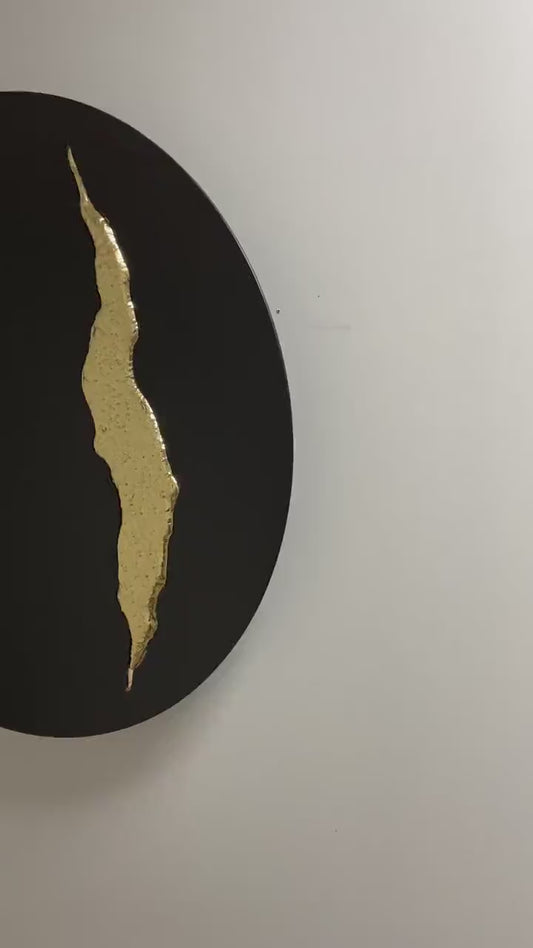 Fracture™ - Contemporary Concave Mirror, Inspired by Space Age Decor, Black Mirror with Brass Detailed, Curve Mirror