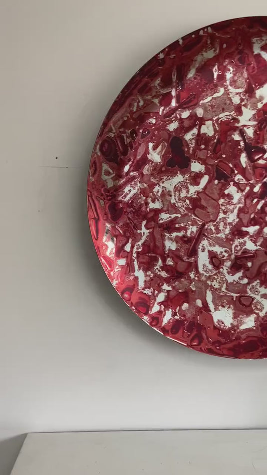 Modern Sculptural Concave Red Mirror, Contemporary Concave Mirror, Space Age Decor, Hand Crafted